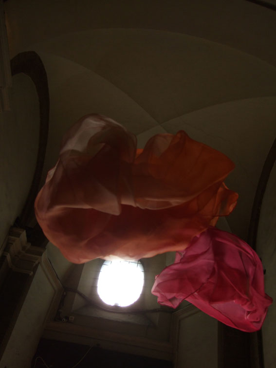 This series of photographs captures the decisive moment of cloth falling through space. The baroque ‘backdrops’ are predominantly by Borromini. The focus is on chance and the abstract shapes that occur when silks ‘perform’ in relation the force of gravity.