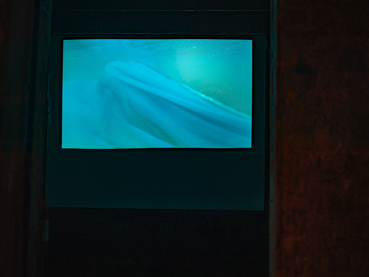 An exhibition of large-scale water colours on rag paper and digital photographic prints on silk, displayed in conjunction with Let’s Sway: Under the Serious Sunlight, a film of silk moving underwater. Shown in connection with Feu Follet, focusing on the ambiguous and offering momentary glimpses of fleeting subject matter. The brief trails of seemingly airborne colour appeared to arrest time in the atmospheric space. The ‘below ground’ projection mimicked the filmed underwater silk ballet. Adjacent piles of seaweed added whiffs of briny smell and these in turn grew blooms of mould.