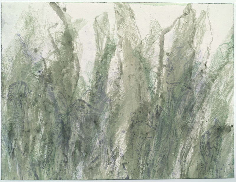 Photographs document the ambiguity of atmosphere and space in the crypt with layered views of the large water colours seen through the digital prints. The installation was accompanied by an artist’s book of related works accompanied by a text discussing the Pontine Marshes by Florian Mussgnug.