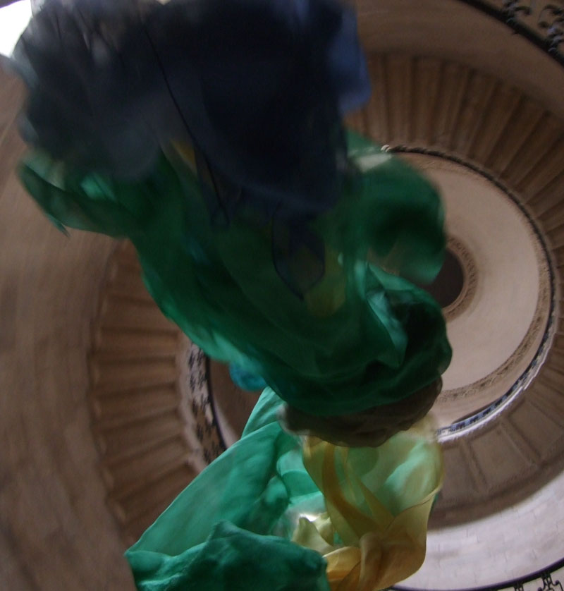 In her exhibition FREEFALL, Rideal showed photographs, photo-booth prints, photograms, and video exploring her interest in how drapery and water share a sense of movement and form, and how light plays similarly across the surface of both. On view were photographs from the series “London Sails”, that document the infiltration of the solid and seemingly static spaces of Wren and Hawksmoor with vivid swathes of fabric that spin and swirl through the geometry of architecture.