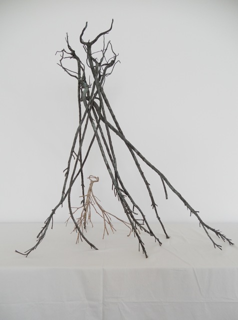 Unique sculptures derived from found materials and also made from plants and trees sometimes from Rideal’s central London garden. Made predominantly from wood, objects are burnt out into bronze or cast from moulds in other metals like silver and aluminium. These works often function in company to form larger pieces. Life size.