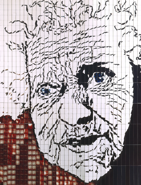 This blanket term describes the type of collages that emerged when hands and arms were choreographed within the photobooth to create specific shapes in response to a pre-ordained drawn cartoon. Rideal pioneered this technique first in Identity, other portrait work followed, then Magic Carpet, Adam & Eve (a pair of skeletons) and a riff on Mondrian’s Red Tree 1908 and Composition in Red, Yellow and Blue 1921.