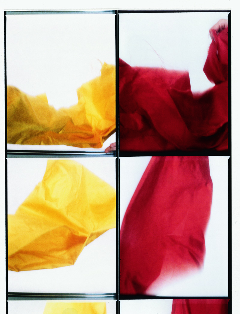 The original owner of Courbet’s L’Origine du monde, the first known “crotch shot” in the history of art, kept the painting in his library behind a green curtain in order to veil the work from inappropriate eyes. In a similar vein, the Marilyn Chambers porn classic Behind the Green Door touched upon themes of concealment. Between them, these two examples run the cultural gamut from high to low (or low to lower, depending on your point of view), but in both cases, green ends up being the colour of choice for masking the forbidden. All of which comes to mind when viewing the most commanding work in London-based artist Liz Rideal’s first solo show in New York: a horizontal photographic grid depicting a diaphanous green fabric’s fall over the course of several frames. The images are dreamy enough, a cloth floats through darkened space. Yet the work, like its companions around the gallery documents the artist’s repetitive gesture of tossing a single piece of fabric in a photo booth (green, in fact, is just one colour in a palette that flirts with erotic associations of the seen and unseen). Rideal either painstakingly adheres these images to create large grids or enlarges individual frames into something that achieves the impact of minimalist colour-field painting. However rigid or mechanical her method, the results are invariably beautiful and highly sensual. No doubt influenced by Muybridge’s motion studies as well as by Warhol’s work with the lowly photo booth, Rideal creates images that are as original as they are dynamic. Occasionally, a hand or a bit of the artist’s arm appears in a photograph. But for the most part, the artist leaves us to fantasize about what might lie behind the veil.